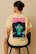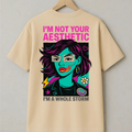 Back Graphic Statement – Bold quote with central illustrated girl in sunglasses