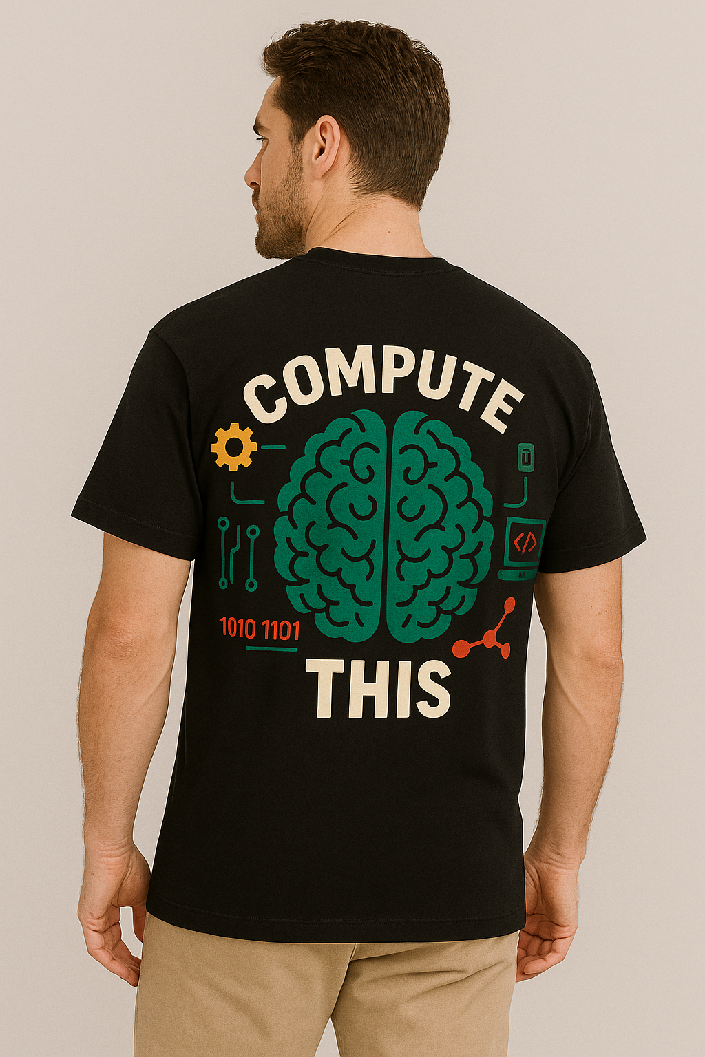 This black oversized tee keeps it minimal in front, while the back brings digital attitude to life. It’s a fusion of biology and code, powerfully visual and unapologetically smart.