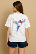 Back: Watercolor hummingbird in flight, symbolizing beauty, hope, and liberation.