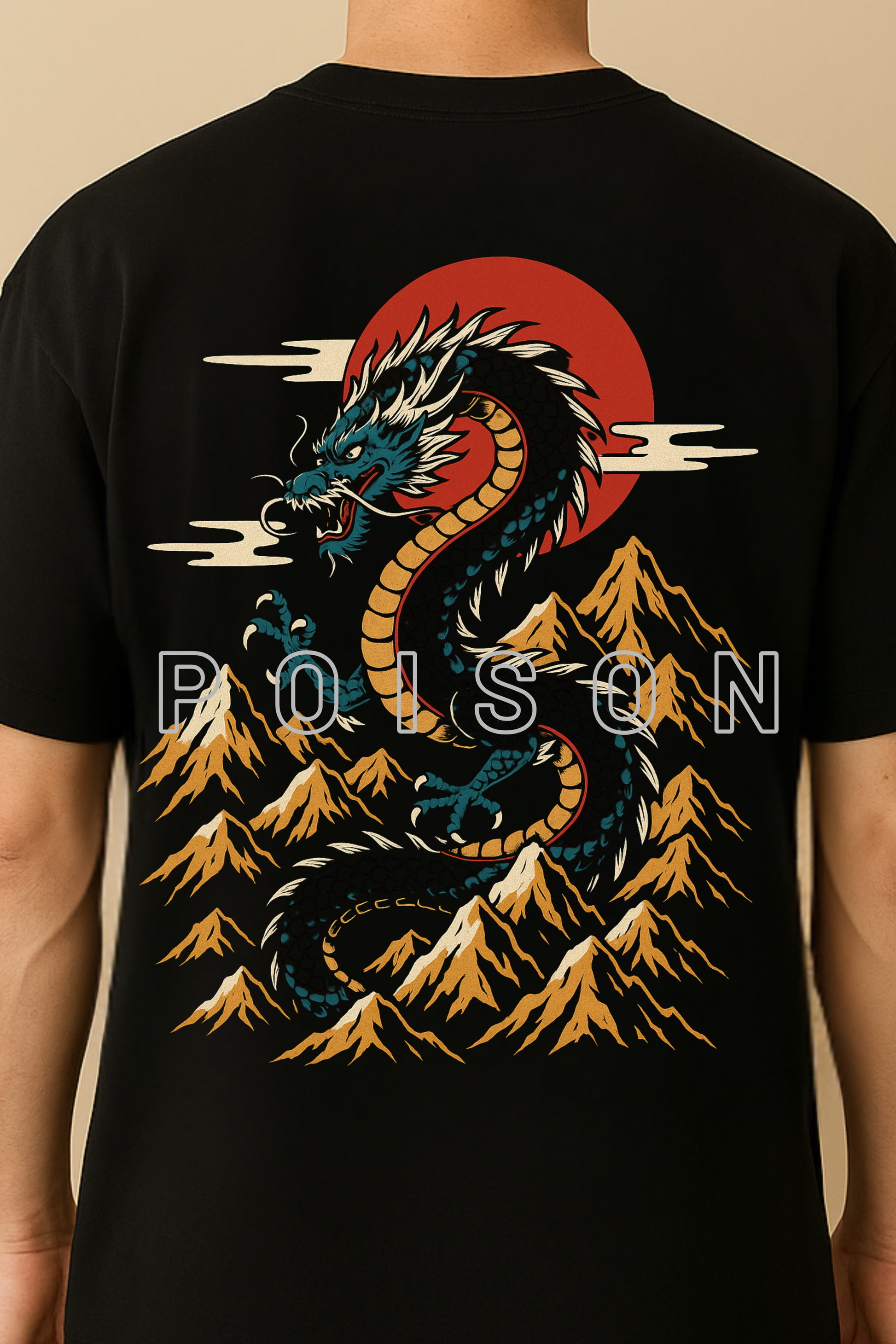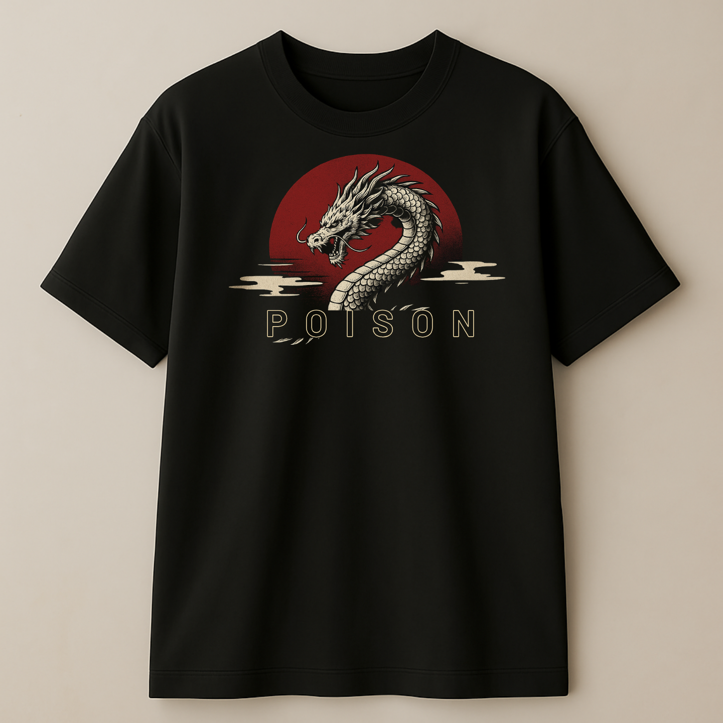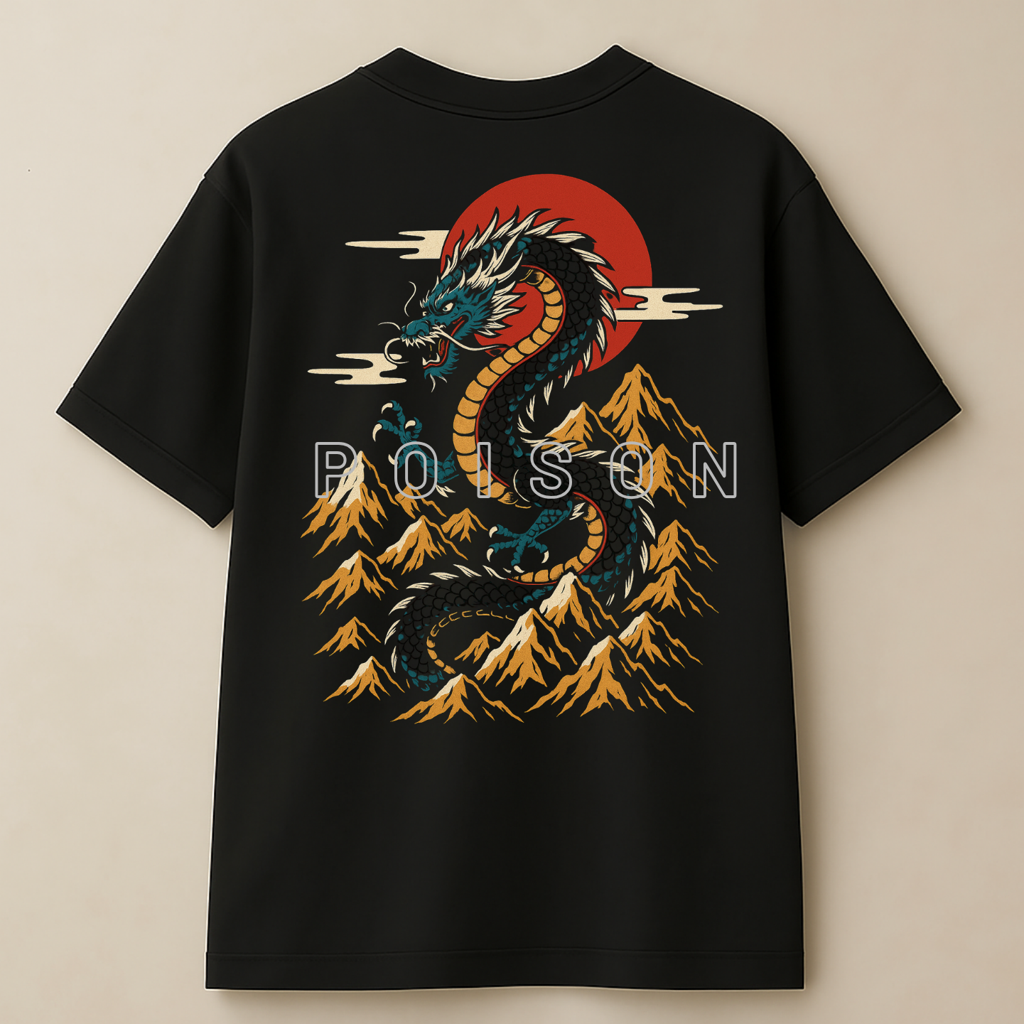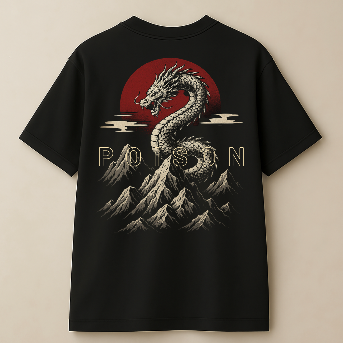 Front & Back Print – detailed dragon head graphic with “POISON” text on the front, full majestic dragon print on the back.
