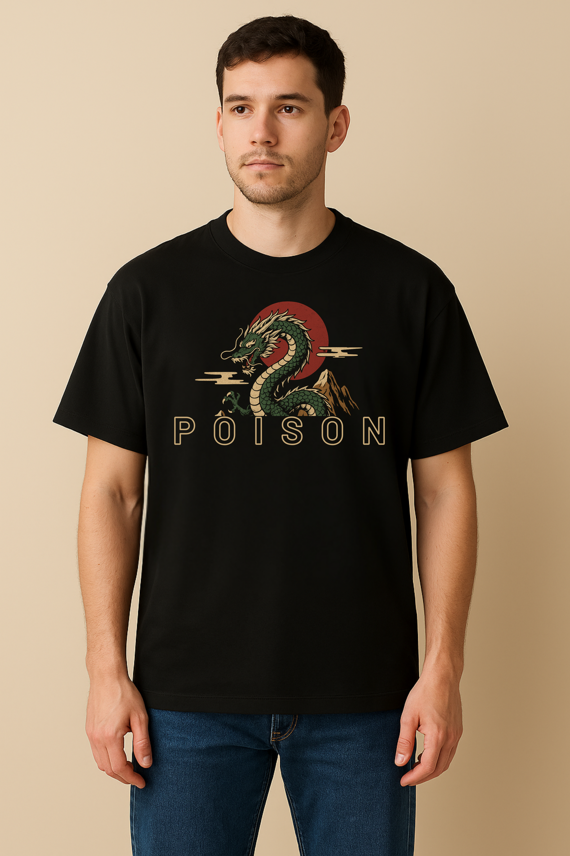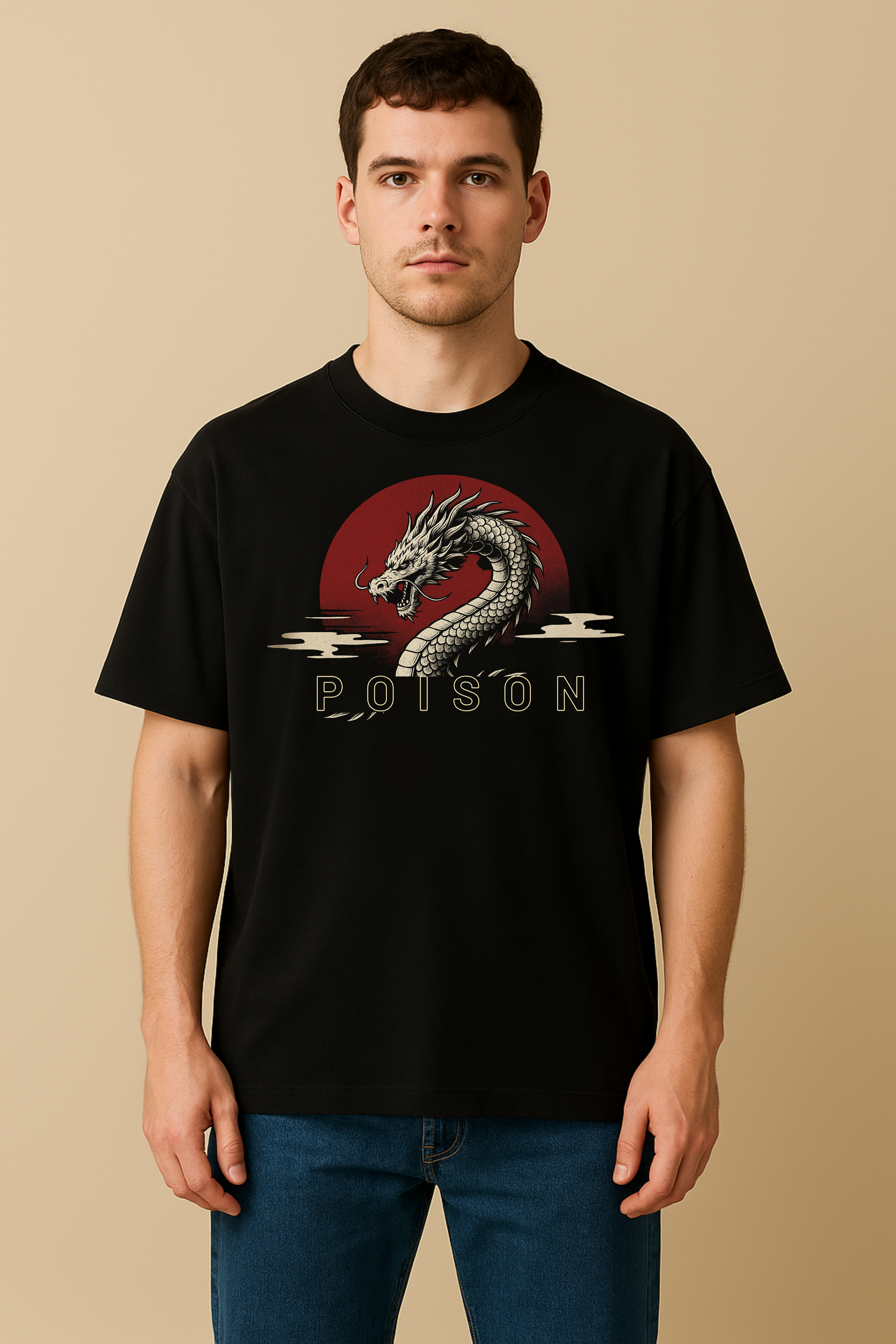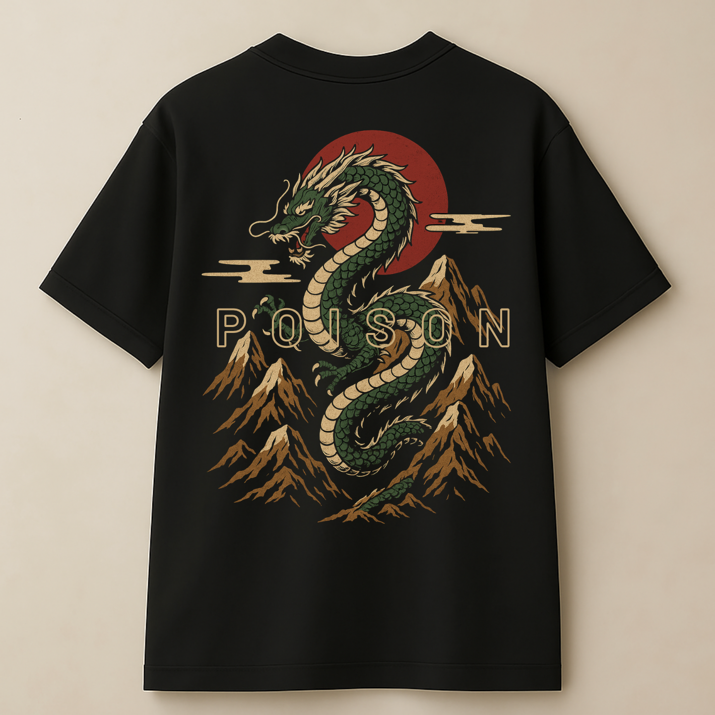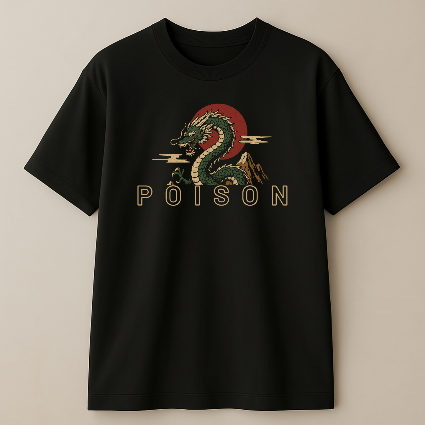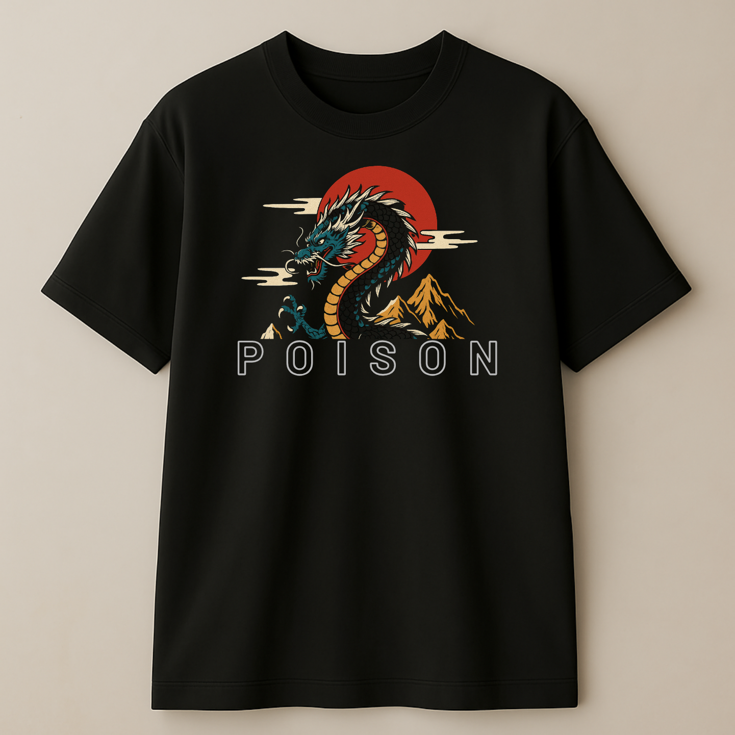 Front & Back Print – detailed dragon head graphic with “POISON” text on the front, full majestic dragon print on the back.