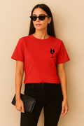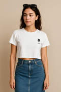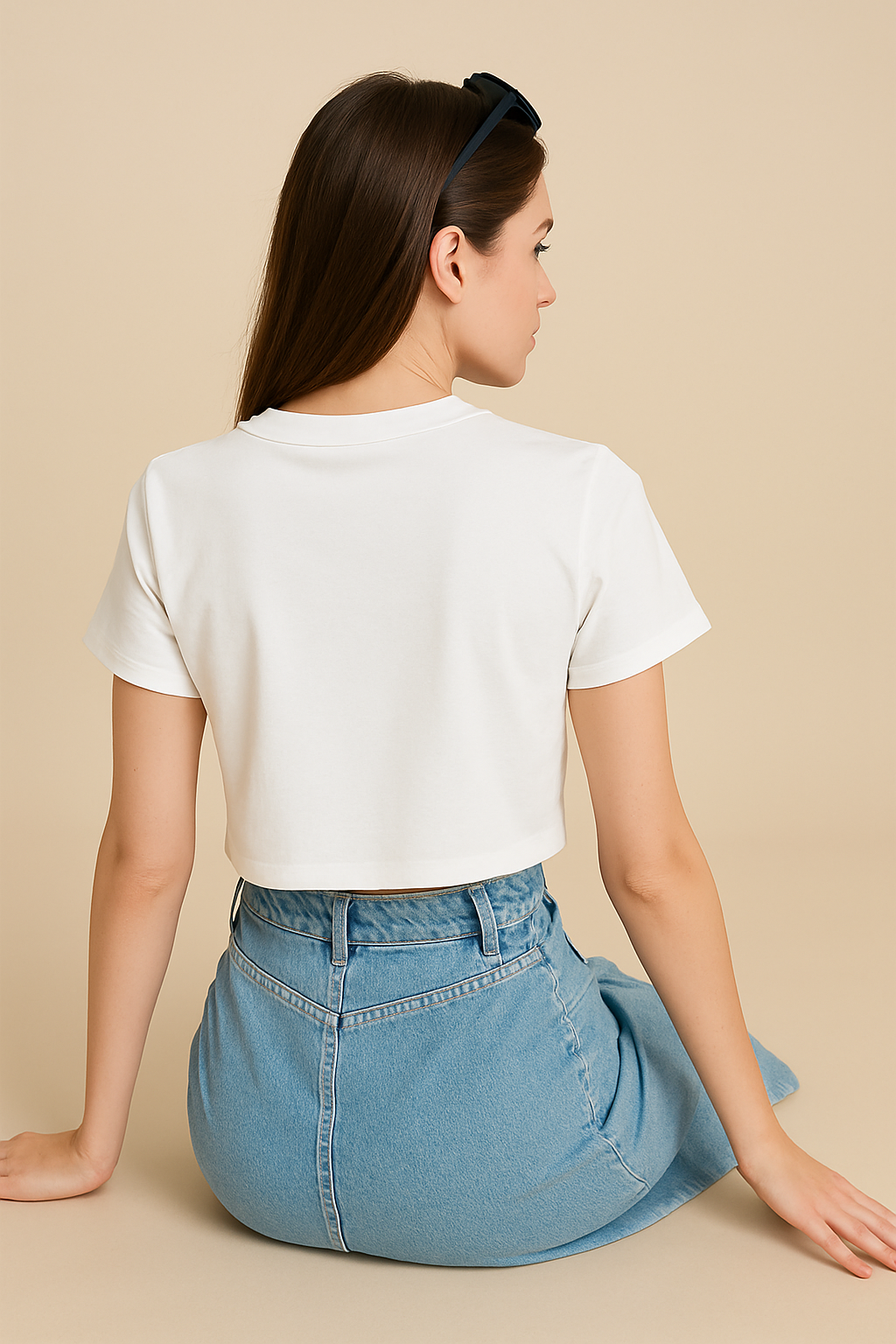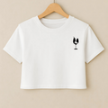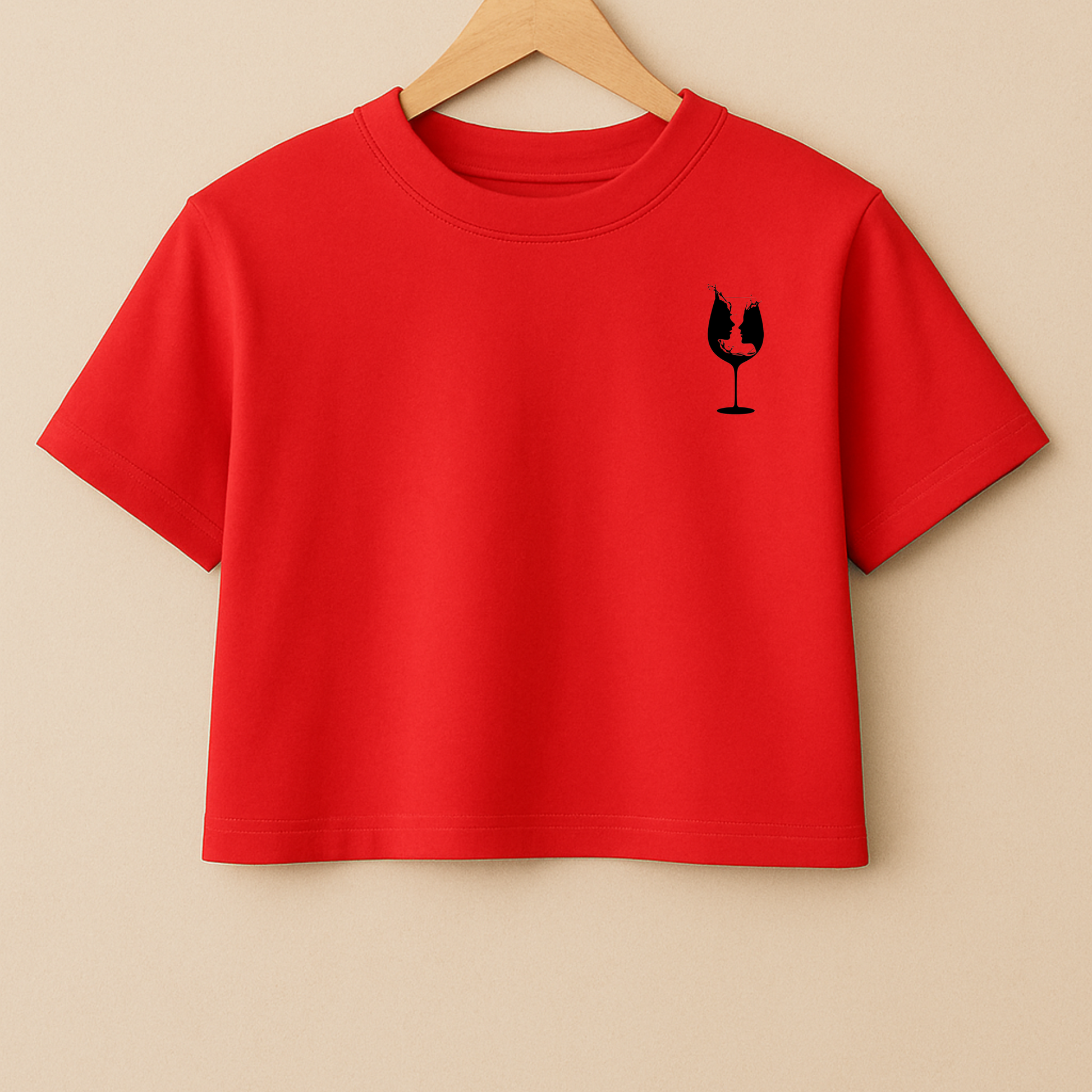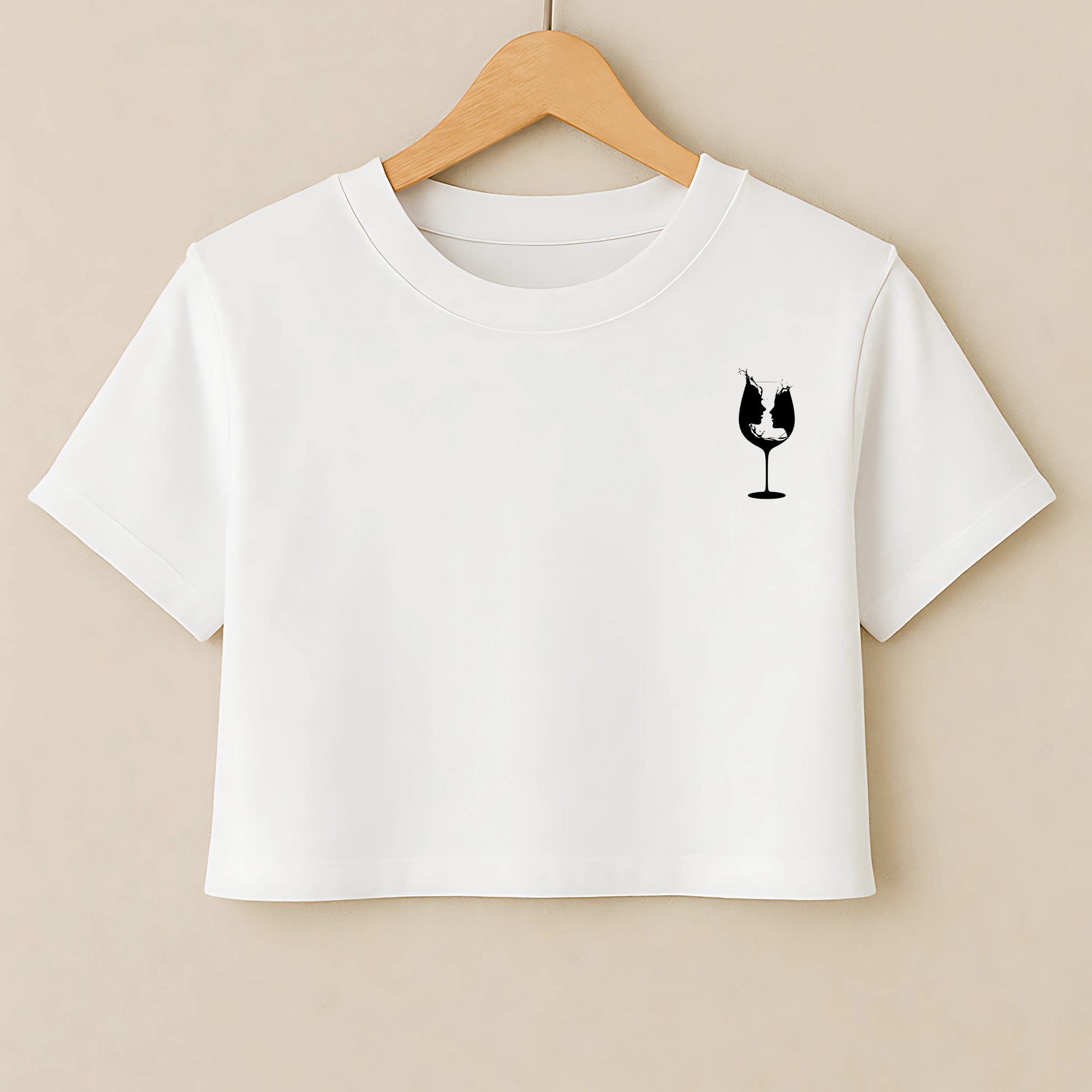This crop top features a delicate design: a wine glass with an enchanting illusion inside. Subtle yet striking, this artful detail turns a simple top into a story of connection.